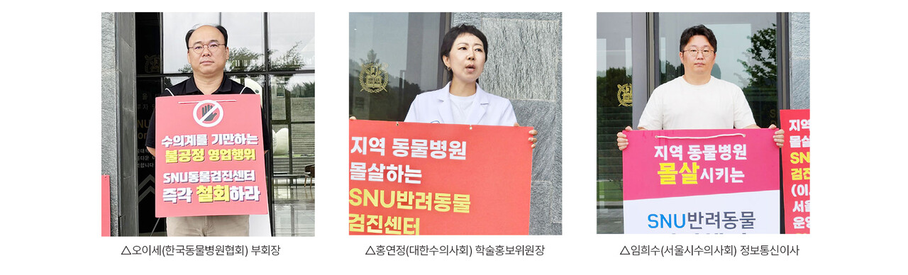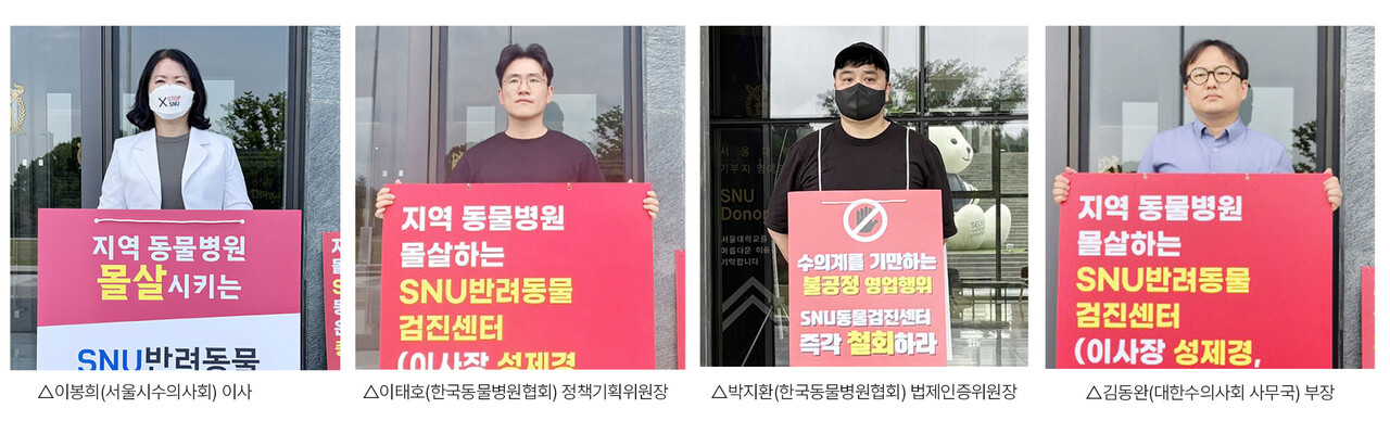 SNU반려동물검진센터(이사장 성제경) 철폐를 촉구하는 수의계의 1인 릴레이 시위가 계속되고 있다.