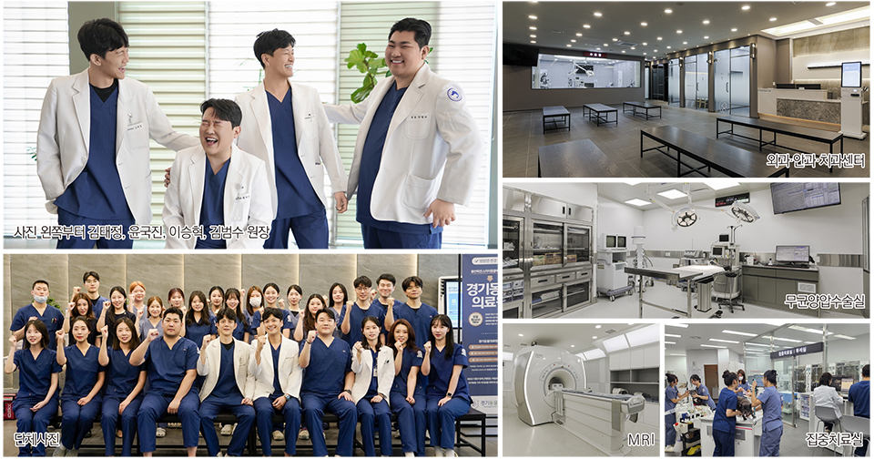 경기동물의료원은 외과수술 전문병원으로서 정형외과, 신경외과, 중재시술 등 전 분야에 대한 수술이 가능하고, 특히 365일 24시간 응급수술이 가능한 응급외상센터가 강점이다.