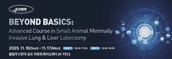 한국수의최소침습수술연구회(KVMIS, Korean study group of Veterinary Minimally Invasive Surgery)가 오는 11월 16일(일)~17일(월) 이틀간 수의사 대상 ‘Beyond Basics: Advanced Course in Small Animal Minimally Invasive Lung & Liver Lobectomy’를 개최한다.