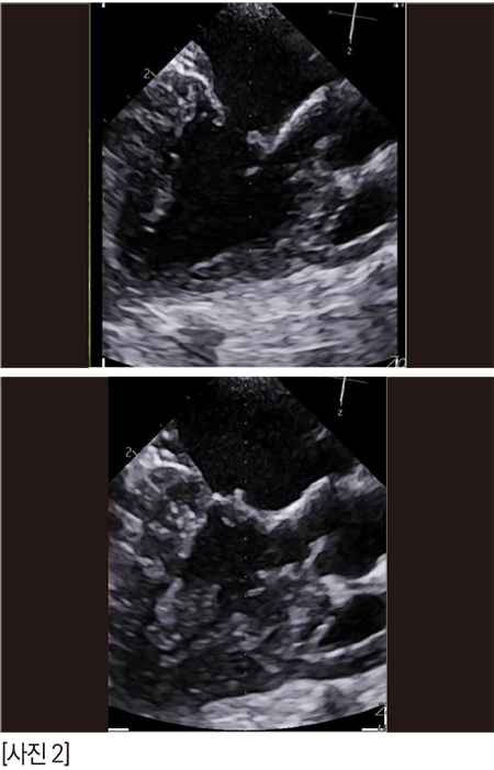 경흉부 심장초음파에서의 소견은 다음과 같다.