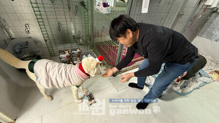 크리스마스를 앞두고 보호소에서 지내는 유기견들에게도 따뜻한 선물이 전해졌다.