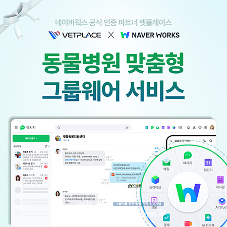 ‘벳플레이스’는 글로벌 580만 사용자가 매일 사용하는 협업 툴 ‘네이버웍스’와 공식 파트너 제휴를 맺고, 동물병원 전용 패키지 형태로 판매 및 도입 세팅을 지원한다.