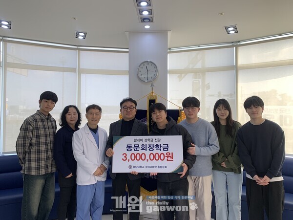 충남대학교 수의과대학 총동문회가 지난 1월 7일 모교 학생회 임원들에게 지난해에 이어 올해로 두 번째 장학금을 전달했다.