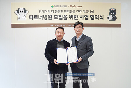 녹십자수의약품(대표 나승식)이 마이브라운반려동물전문보험(대표 이용환)과 ‘마이브라운 파트너병원’ 모집 협력을 위한 업무협약을 체결했다.