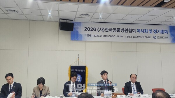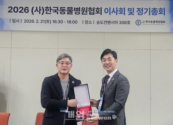 (사)한국동물병원협회(이하 카하)는 지난 2월 21일 오후 5시 송도컨벤시아센터에서 ‘2026 정기총회’를 개최하고, 총인원 301명 중 참석 26명, 위임장 135명으로 성원을 이룬 가운데 제18대 회장 선거를 실시, 최이돈 현 회장이 만장일치로 추대되며 연임을 확정했다.