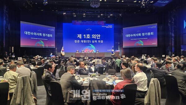 총회에 앞서 ‘2026년도 정기표창 시상식’도 진행돼 ‘최우수지부’에 대구광역시수의사회와 경상남도수의사회가, ‘수의사대상’에 김윤찬(경기지부), 김정호(충북지부), 홍연정(서울지부) 원장이 수상의 영예를 안았다. ‘공로패’는 서울시수의사회와 광진구수의사회 및 박준서(대구지부), 최이돈(한국동물병원협회) 회장, 오태호(경북대) 회장 외 3명에게 주어졌으며, 임기만료 지부장 12명과 각 지부 회원 16명에게 ‘우수회원’ 시상이 있었다.