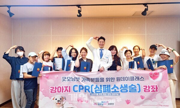 굿모닝펫동물병원(원장 장봉환, 이하 굿모닝펫)이 지난 9월 19일 보호자 대상 교육 프로그램 ‘원데이 클래스’ 두 번째 과정으로 ‘강아지 CPR(심폐소생술) 강좌’를 열어 큰 호응을 얻었다.