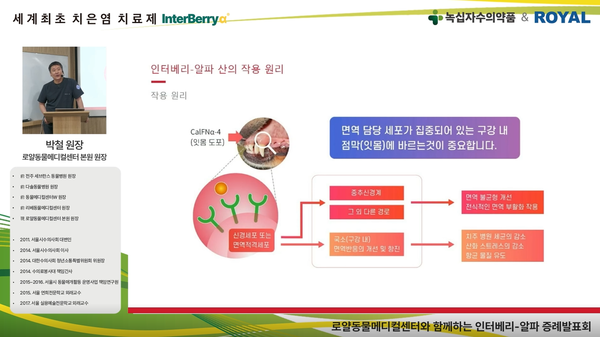 이번 웨비나는 치주조직재생술(GTR, Guided Tissue Regeneration)의 실제 임상 적용 사례와 함께 반려동물 치은염 치료제 ‘인터베리-알파’의 활용 방안을 공유하기 위해 마련됐다.