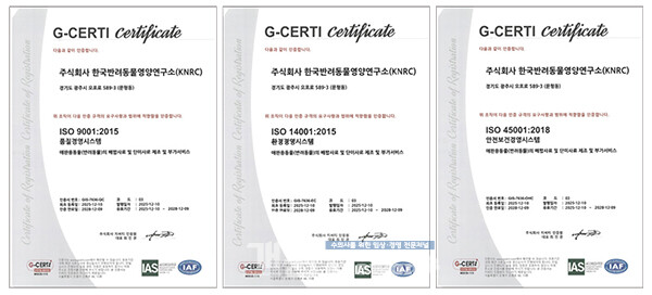 한국반려동물영양연구소, HACCP 및 ISO 9001·14001·45001 인증 획득