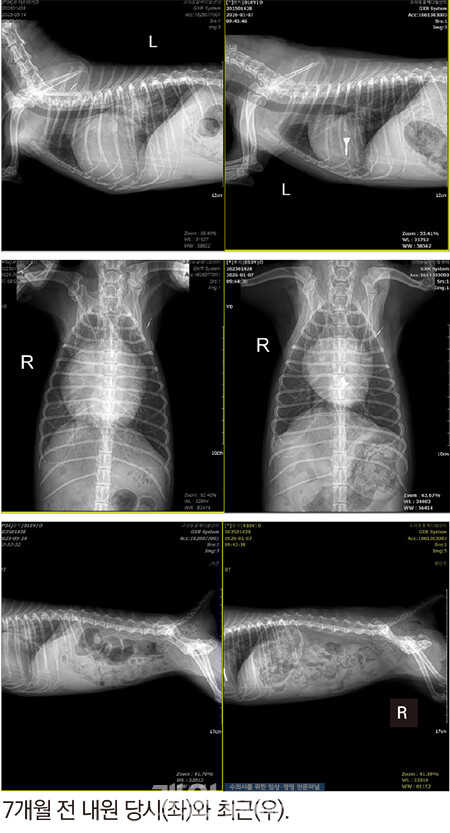 집이 멀어서 근처 병원에서 관리 중인데, 본원 주치의 이정민 수의사와 근처 병원 주치의가 함께 협진하여 봉지를 살리고 있다.
