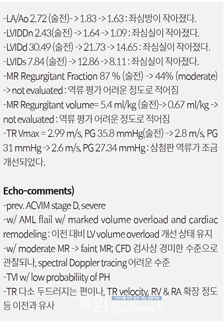 [10살 2.2kg 푸숑 stage D MMVD 환자가 내원했다. 일본 자스민에 개심수술을 9월에 예약해두고 기다리고 있었다는데, 한달 사이에 급격하게 나빠져서 아무것도 하지 못하고 있고, 일주일 가까이 입원해있지만 퇴원이 가능할지 모르겠다는 보호자와의 통화..]로 시작하고 있었다.