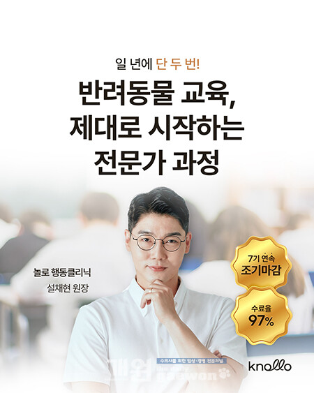 이번 과정은 설채현(놀로 행동클리닉) 원장을 비롯한 국내 반려동물 행동·교육 분야 전문가들이 참여해 설계한 민간 자격 과정으로, 반려동물 행동 문제 예방과 관리에 필요한 이론과 실습 교육을 체계적으로 제공할 예정이다.