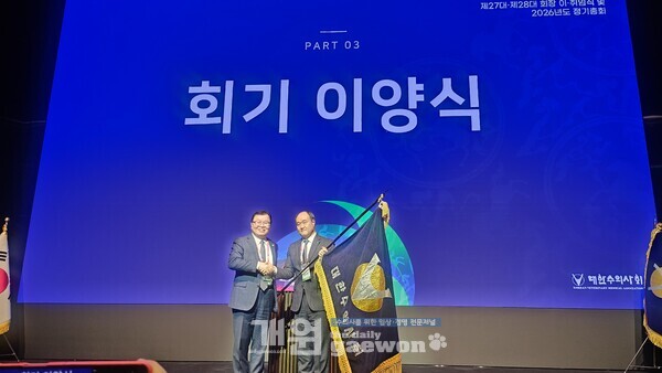 대한수의사회 ‘제27대·제28대 회장 이·취임식’ 및 ‘2026년도 정기총회’가 지난 2월 27일 오후 1시 양재동 엘타워에서 개최됐다.
