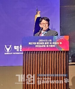 이날 이·취임식에서 허주형 27대 회장은 “2020년 직선제 최초의 회장으로서 23년 재선에 성공하며 수의사의 발전과 권익 향상을 위해 지난 6년간 쉼 없이 달려왔다. 저의 기억 속에는 방역 현장에서, 실험실에서, 동물원에서, 수의사가 될 치과대학 학생들의 눈을 또렷이 기억하며 깊이 간직하겠다”며 “수의사는 단순한 진료를 넘어 공공 안전을 지키는 최전선에 있다는 사실을 잊어서는 안된다. 차기 집행부는 회원들의 연대 속에서 반드시 더 강한 수의사회로 성장할 것이다. 우연철 차기회장에게도 무한한 신뢰와 응원을 보낸다”면서 “지난 78년간 대수회를 지키고 발전시켜 온 역대 회장님들과 선배님들께 머리 숙여 감사 인사를 전한다. 수의사 회장에서는 물러나지만 평생 수의사로서 여러 선배님들과 여러분의 동지로서 앞으로도 대수회의 발전을 위해 계속 함께 하겠다”며 감사 인사를 전했다.